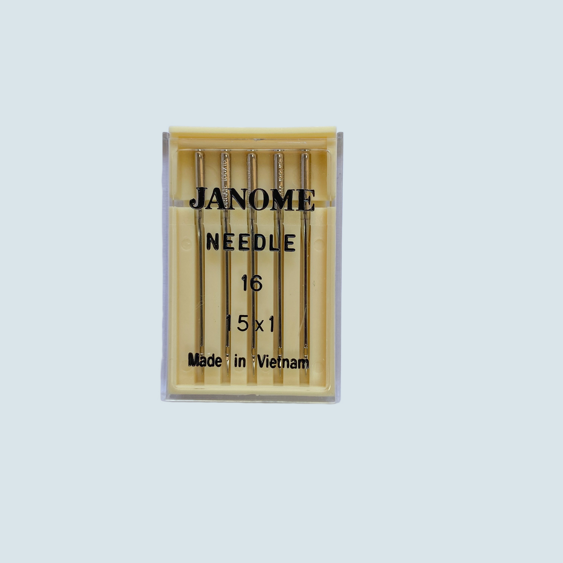 Esta Aguja tamaño 16 para Maquina Casera cuenta con 5 agujas de la reconocida marca Janome, ideales para coser telas gruesas con facilidad y precisión. Mejore la calidad de sus proyectos de costura con esta máquina de confianza.